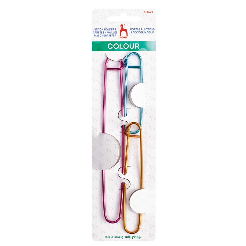 Support de point de poney Outil de tricot essentiel utilisé pour séparer les mailles lors du tricotage de cols, de torsades ou lors de l’utilisation de fils différents. Maintenez les mailles pendant que le projet de tricot n’est pas utilisé et empêchez-les de glisser des aiguilles. Les porte-points Pony en aluminium se ferment comme des épingles de sûreté et la conception de verrouillage sécurisé facilite le maintien des points sans accrocher votre tricot.